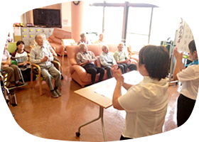 実際に利用者様が利用されている様子をご覧になっていただくことで、イメージが出来ます。その後、ご希望によって、「デイサービスなごやか」の介護に対する考え方や一日の流れ、ご契約内容等についてご説明します。